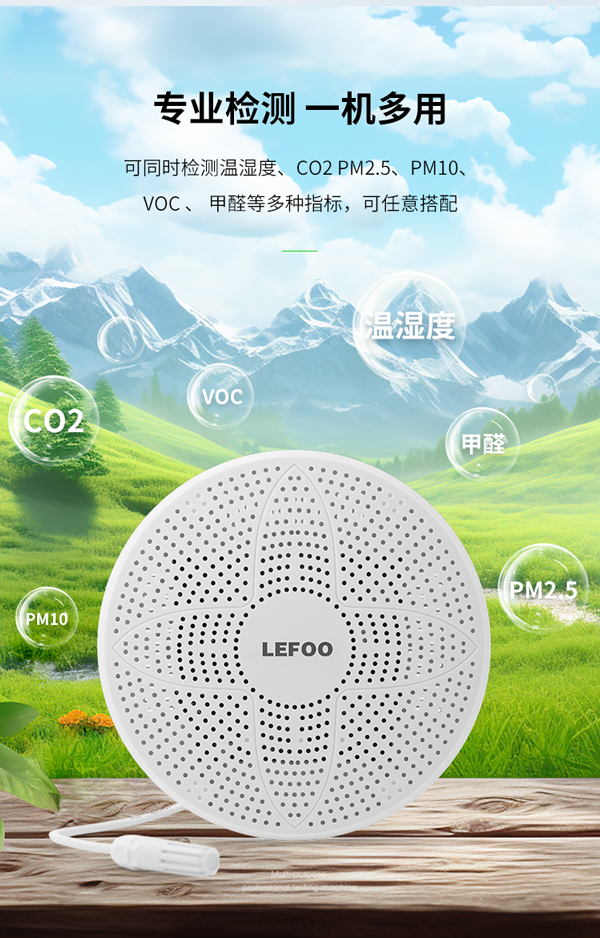 1、一機多用:LFG60能夠同時檢測溫濕度、CO2、PM2.5、PM10、VOC和甲醛等多種空氣質量指標,滿足不同環境的檢測需求。