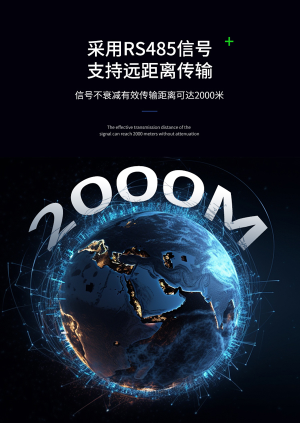 2、RS485信號傳輸:采用RS485信號,支持遠距離傳輸,有效傳輸距離可達2000米,信號不衰減,確保數據實時準確。