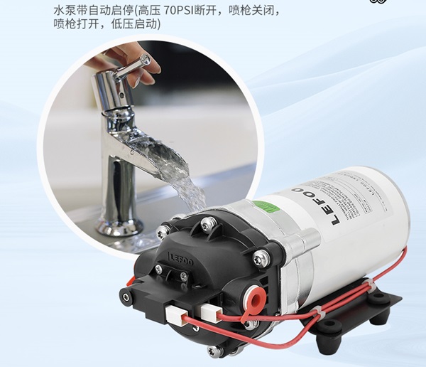 自動啟停功能:當噴槍關閉時,泵自動停止運行(高壓70PSI斷開);噴槍開啟時,低壓啟動,避免頻繁啟停,延長使用壽命。