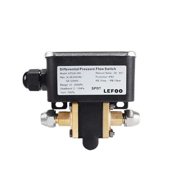 LF52A系列壓力開關(guān)是一款可調(diào)式壓差開關(guān)。針對少量使用且對壓差值有不同要求的應(yīng)用場合而開發(fā),是靶式流量開關(guān)的替代品。避免冷水機組每年需要更換靶式流量開關(guān)的弊端。當(dāng)系統(tǒng)中水流量(壓差)上升或下降到設(shè)定值時,輸出一個報警或切斷功能的信號提供給自控系統(tǒng)。