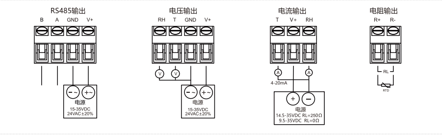 ≤250Ω(電流型),≥2KΩ(電壓型)