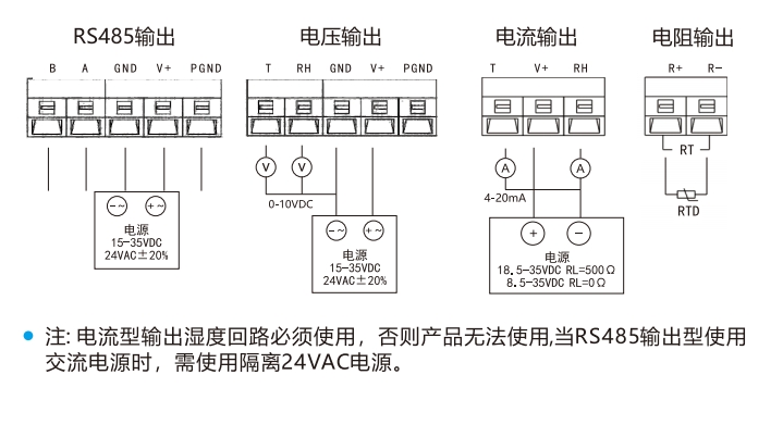 1.LFH101/102/103產品電流型由濕度回路供電,所以此回路必須使用,否則產品無法正常工作