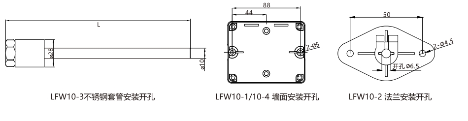 1、例LFW10-2A412代表風管型,溫度輸出4~20mA,溫度量程0~50℃,探桿長度200MM
